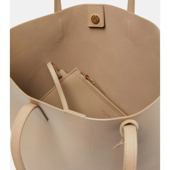 Simplify your life with the Shopping N/S tote bag from Saint Laurent. Made from beige leather, it has top handles for easy carrying and a spacious interior to store everything you need for a hybrid lifestyle.