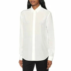 Timeless glamour is easily achieved when donning this blouse from Saint Laurent. The style staple has been crafted in Italy from semi-sheer silk crรชpe de chine in classic white. Let yours carry you through the seasons, pairing it with everything from suiting separates to contemporary denim.