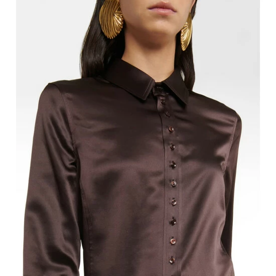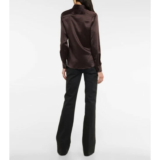 Update your work wardrobe with this lustrous satin button-up shirt from Saint Laurent. The style in chocolate brown is made from pure silk and designed for a close fit.