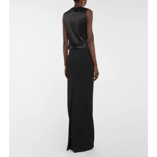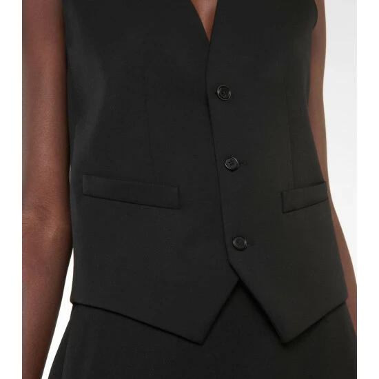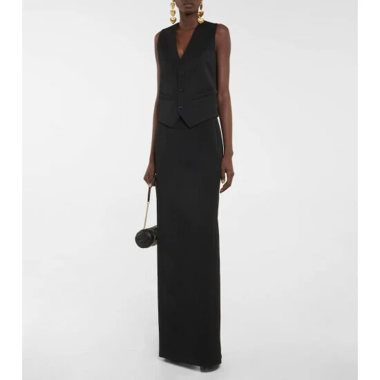 Take a classic approach to dressing with styles like this vest from Saint Laurent. Made from silk, it has a buttoned front and two welt pockets in the front.