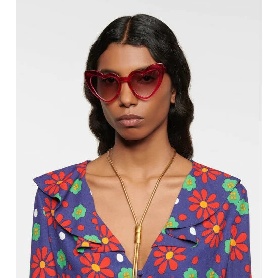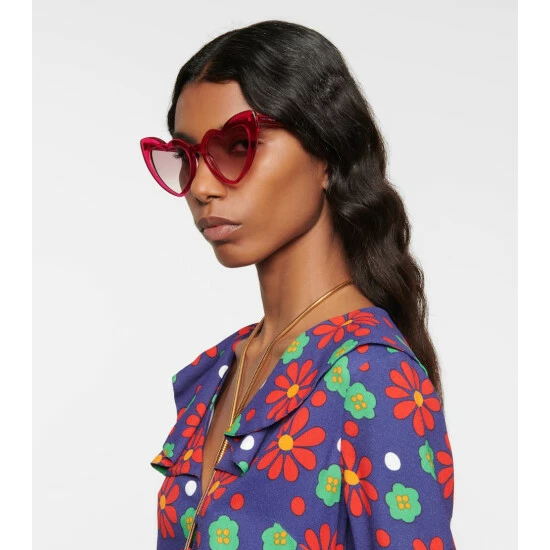 Wear your devotion to Saint Laurent with the SL 181 Loulou sunglasses. They have striking pink heart-shaped frames with cat-eye tips and logo-engraved arms. Tinted lenses ensure your eyes are well-protected.
