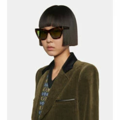 Bring out your most glamorous side by slipping on these green SL 214 Kate cat-eye sunglasses from Saint Laurent. This lightweight acetate pair is finished with green lenses and ever-so-subtle logo detailing on its slim arms.