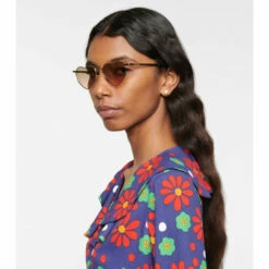 Opt for the lightweight SL 301 Loulou sunglasses from Saint Laurent for a playful look. The heart-shaped frames are made from gold-toned metal wire with gradient lenses in a green to rose tint. Please note that the color of the protective case may vary.