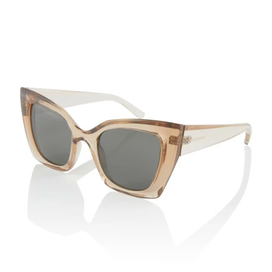 For a modernist finish, look to Saint Laurent’s latest update of its SL 466 sunglasses. This design is rendered in translucent beige acetate to a classic cat-eye silhouette. Logo-engraved sides subtly point to the piece’s roots.