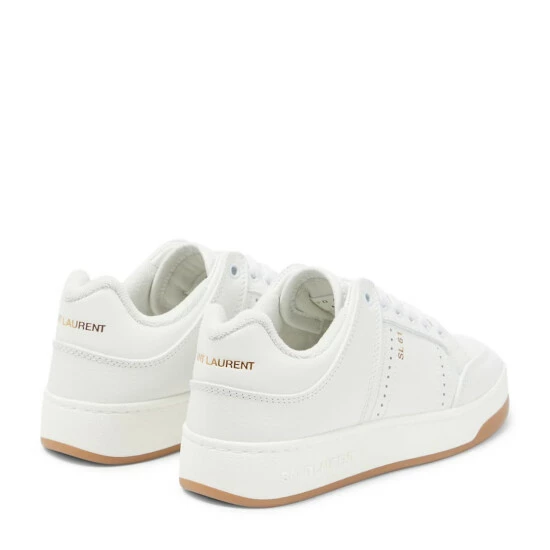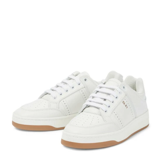 Make the SL/61 sneakers from Saint Laurent the building blocks of your minimalist ensembles. Cut from smooth leather, they feature perforated paneling, bicolor rubber soles, and hot-stamped golden logo insignia at the sides and heels.