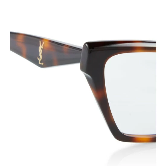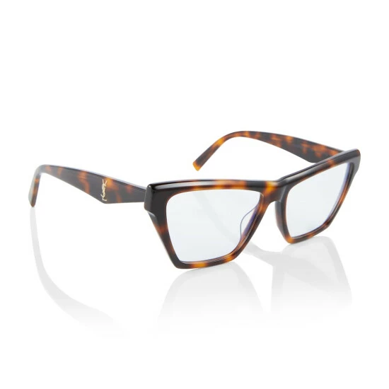 The SL M103 glasses from Saint Laurent are patterned in a stylish tortoiseshell print. Made from acetate, they have YSL inlays at the temples and rectangular frames that tip outwards at the top.