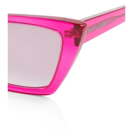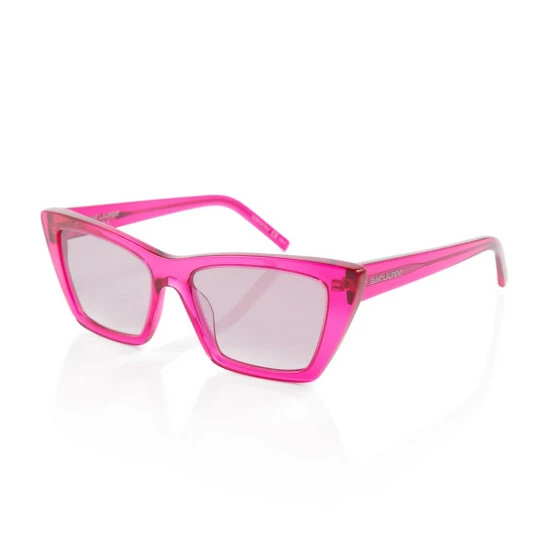 Saint Laurent’s SL276 Mica sunglasses in a cat-eye silhouette is a timeless accessory you need to invest in. This hot pink pair has tinted lenses and subtle brand engraving in the temples for irresistible recognition.