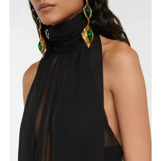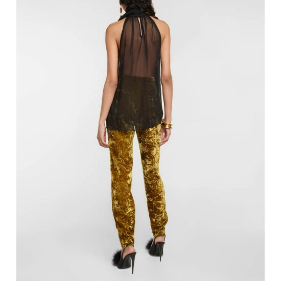 Capture the spirit of Saint Laurent with this sheer blouse. The sleeveless design is made from carefully crafted silk, and has a self-tie at the neckline.