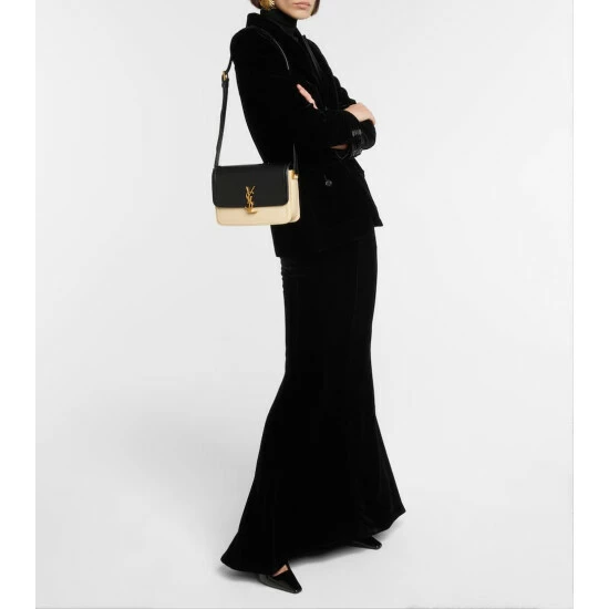 Carry elegance into your every day with the Solferino Medium crossbody bag from Saint Laurent. The timeless satchel style is made from calf leather in Italy and fastens with an antique golden YSL monogram turn-lock. You’ll find multiple compartments inside for organizing your valuables.