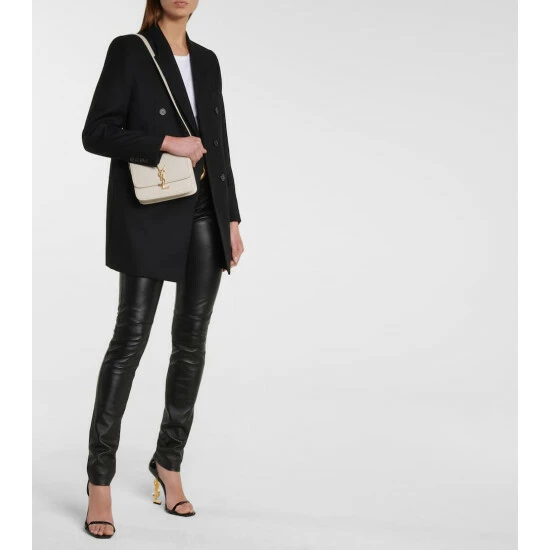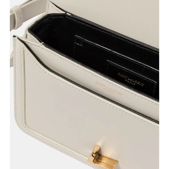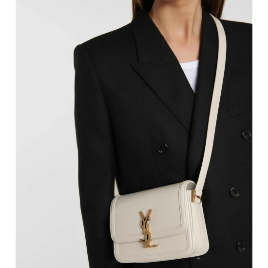 Named after the Rue de Solferino on Paris’ Rive Gauche, the Solferino is the newest “It” bag from Saint Laurent. Made from cream white calf leather with a rigid silhouette, it recalls the satchel bags of the ’70s starlets who first wore the label. The shoulder strap is adjustable for crossbody wear, while the antiqued golden YSL monogram serves as both a decorative and functional closure.