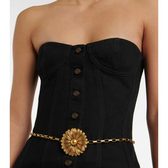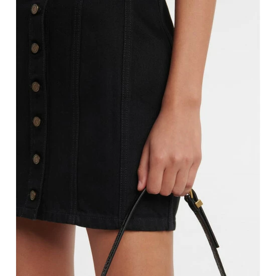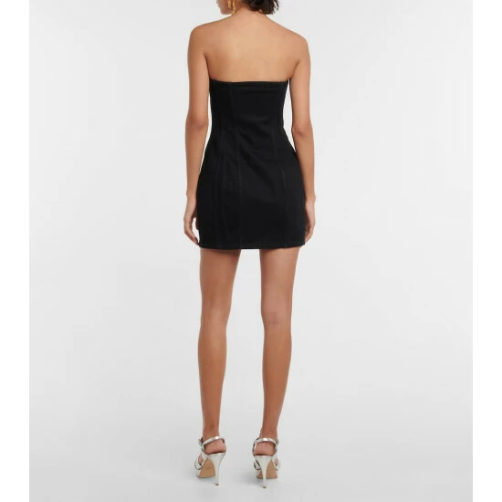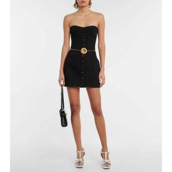 Saint Laurent makes denim chic for after-dark events with this sultry minidress. It has a figure-hugging silhouette with a sweetheart neckline and contrasting topstitching that accentuates the hourglass shape.