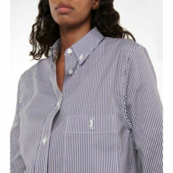 This shirt from Saint Laurent is the first step in mastering sophisticated yet effortless French style. Made from lightweight cotton, the button-down design has a classic striped pattern, curved hem, and subtle monogram embroidery.
