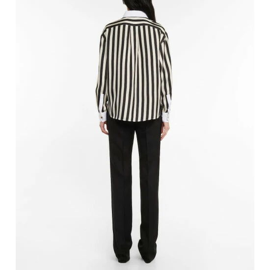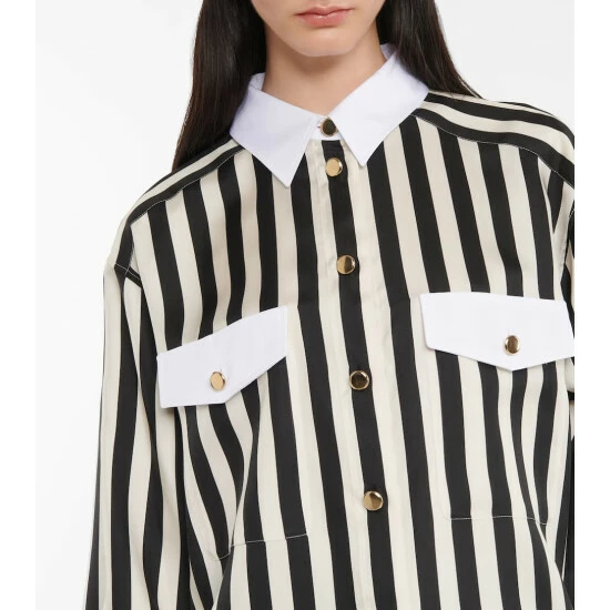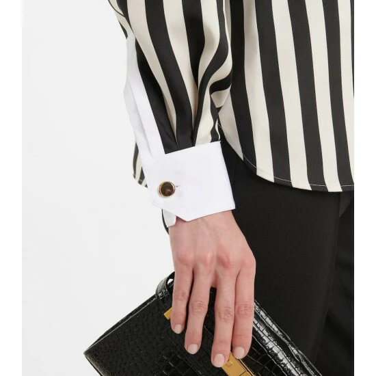This striped shirt from Saint Laurent is a timeless piece. It’s made from silk and features a pointed collar, patch pockets, and glamorous golden buttons.