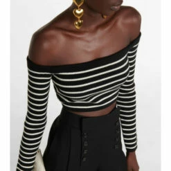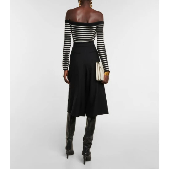 This striped sweater from Saint Laurent is knit from a combination of wool and cotton, and shows off the shoulders.