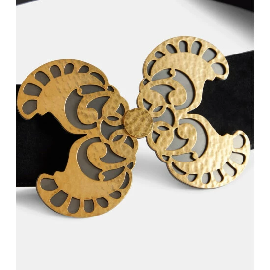 Lend everyday looks a high-octane twist courtesy of this black belt from Saint Laurent. Made from soft suede, it secures with a gold-tone buckle that takes the form of a butterfly.