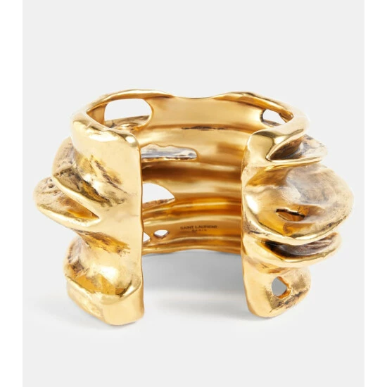 The Tornado Crater cuff bracelet from Saint Laurent will add an element of edge to your outfit. With sculpted ridges and holes, this oversized slip-on open cuff has a heavily distressed texture.