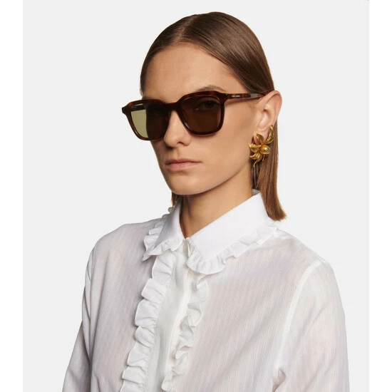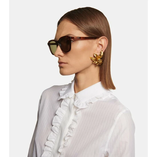 Frame your face in the timeless elegance of these brown tortoiseshell sunglasses from Saint Laurent. Made from acetate, the pair features logo detailing on the temples and square frames and tinted lenses that offer category 2 protection from UV rays. Please note the color of the protective case may vary.