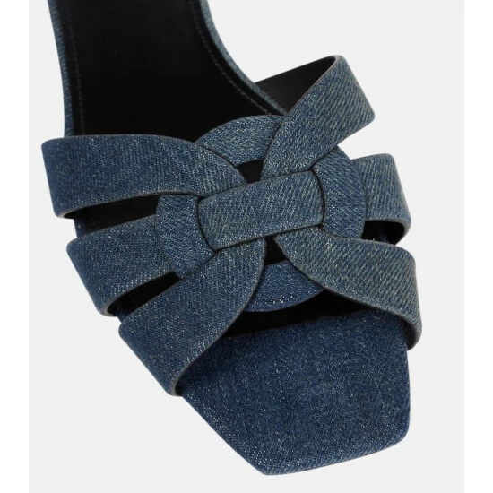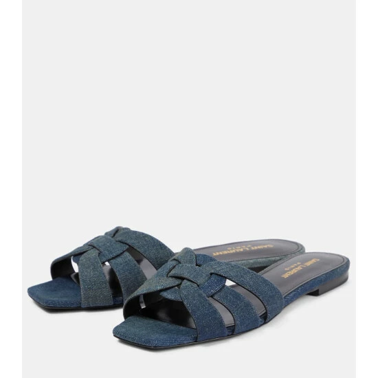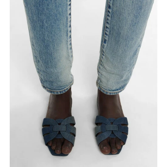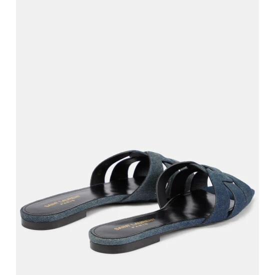Mixing glamour and ease, Saint Laurent’s Tribute slides are a masterclass in elegant nonchalance. Made from denim and leather, they have interwoven straps that form the pair’s namesake motif.