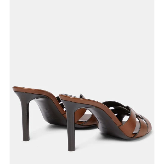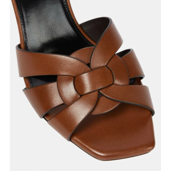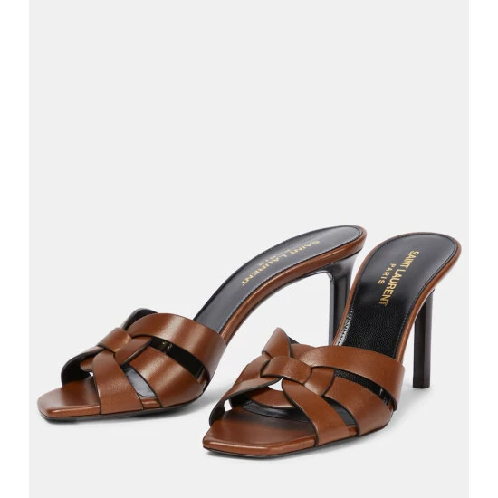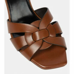These tan sandals are a pared-back take on Saint Laurent’s iconic Tribute platforms. Designed in the style of backless mules, they have slender 85mm heels and interwoven straps across squared toes.