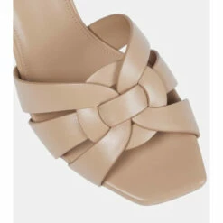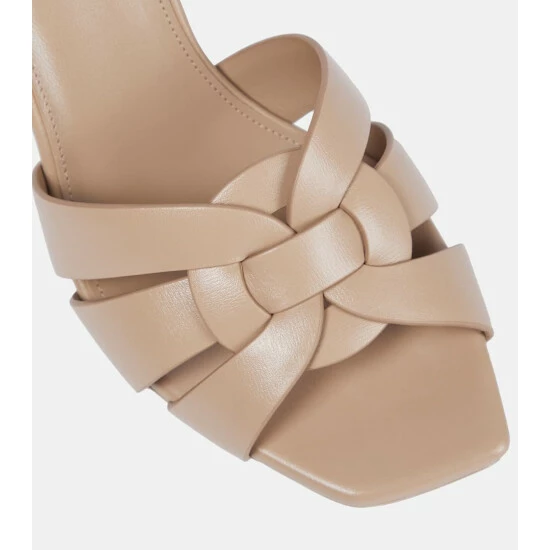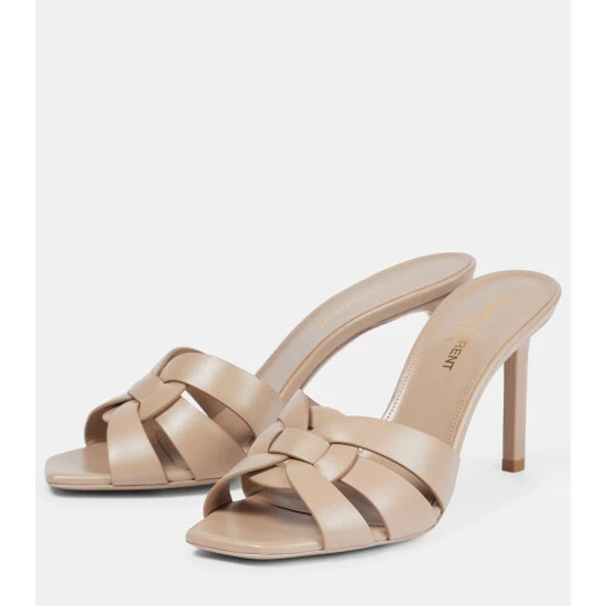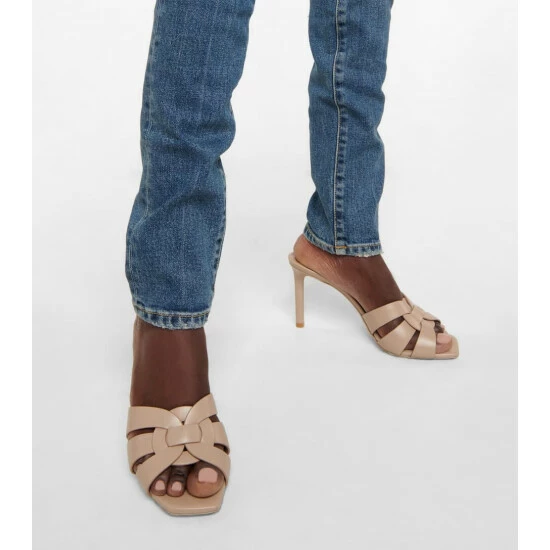 These beige sandals are a pared-back take on Saint Laurent’s iconic Tribute platforms. Designed in the style of backless mules, they have slender 85mm heels and interwoven straps across squared toes.