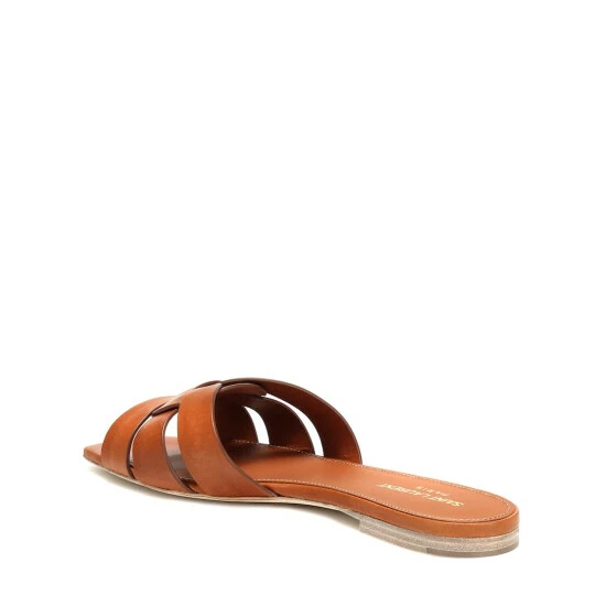 Mixing glamour and ease, Saint Laurent’s Tribute Nu Pieds 05 slides are a masterclass in elegant nonchalance. Crafted in Italy from calf leather in a rich “Amber” brown, the design features intricate weaving at the straps, forming the signature Tribute motif. Make yours a suitcase essential for warm-weather getaways.