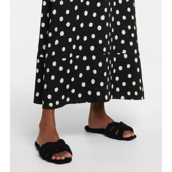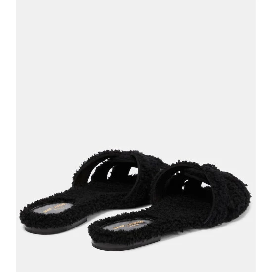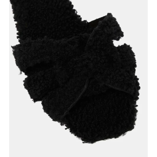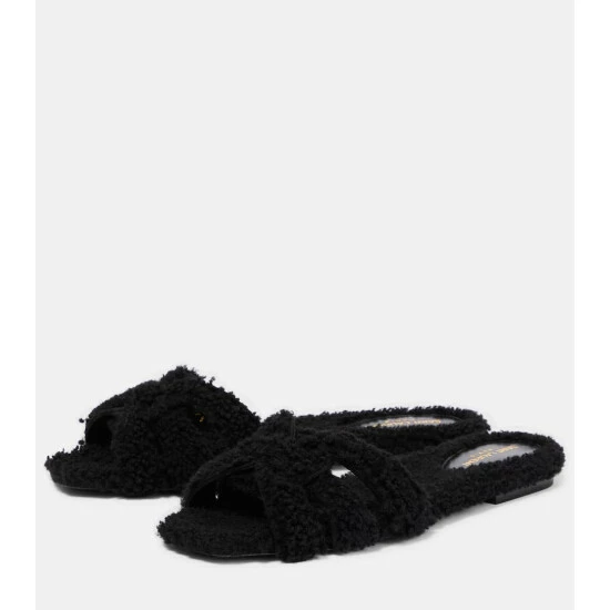 Saint Laurent’s Tribute slides will suit transeasonal styling. They’re made from tactile shearling with intertwining Tribute straps that create an effortlessly chic design.