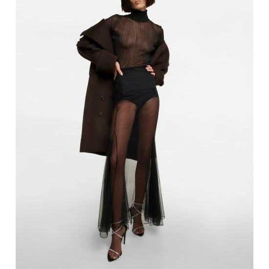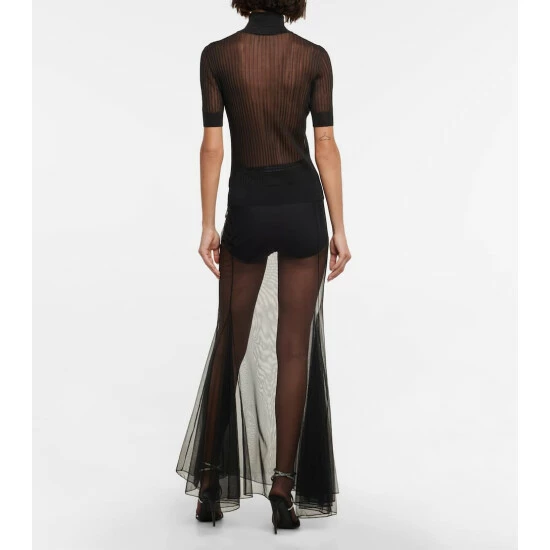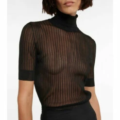 Made from semi-sheer silk in a ribbed knit, this top from Saint Laurent is a short-sleeved design with a turtleneck.