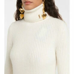 Made from a streamlined ribbed cashmere-blend knit, this sweater from Saint Laurent is detailed with a golden metal YSL monogram logo plaque on its turtleneck.