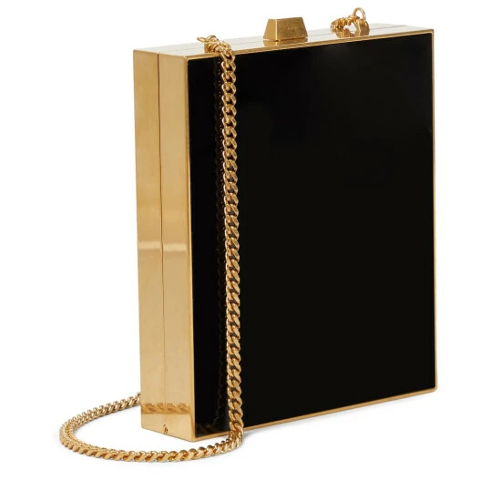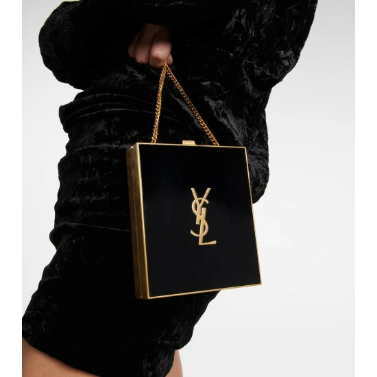 The Tuxedo Box clutch from Saint Laurent is a striking piece made in Italy from Plexiglas® and metal and lined with leather. It features push-stud fastening, a chain strap, and the YSL logo in front.