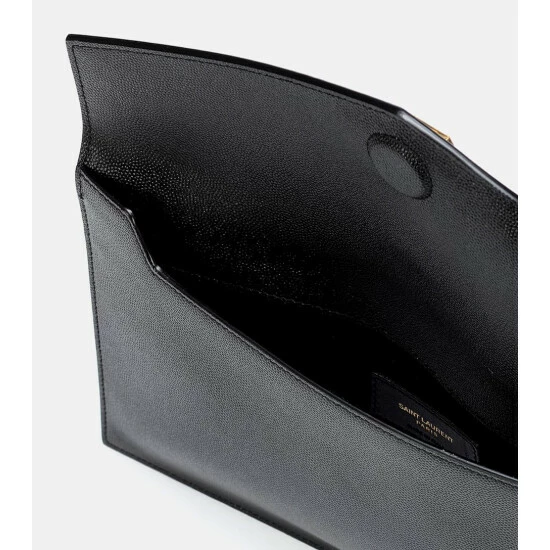 The black Uptown clutch from Saint Laurent makes for a timeless installment to your accessories rotation. Made in Italy from grained leather, itโs cut to an envelope silhouette with a magnetic flap closure. The labelโs iconic YSL emblem, worked in gold-tone metal, serve as a high-octane finishing touch.