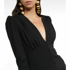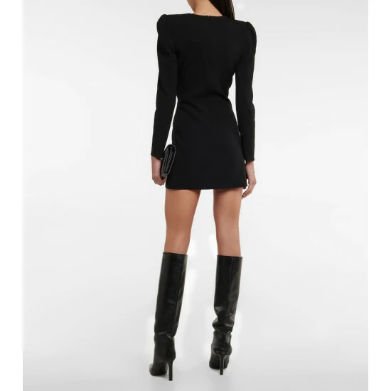 Invest in this stylish LBD from Saint Laurent for a forever classic. Lined with silk for comfort, the long-sleeve style features an alluring plunging V-neck and padded shoulders for a strong, feminine touch.