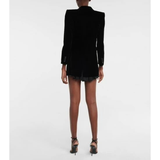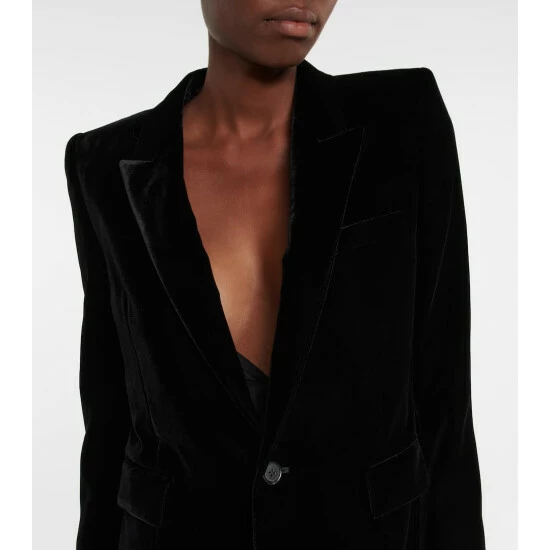 Timelessly elegant, this velvet blazer from Saint Laurent has a single-breasted front, a silk lining and flap pockets.