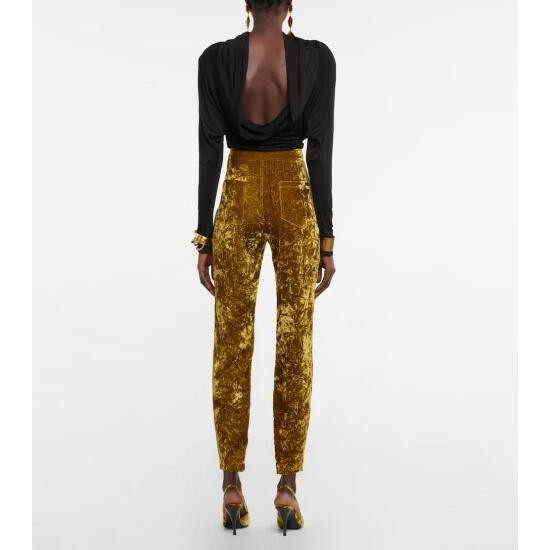 Saint Laurent adds fresh depth to a wardrobe essentials, starting with these rich velvet leggings. In a shock of color, the slim design has rear patch pockets and zip detailing on the ankle cuffs.