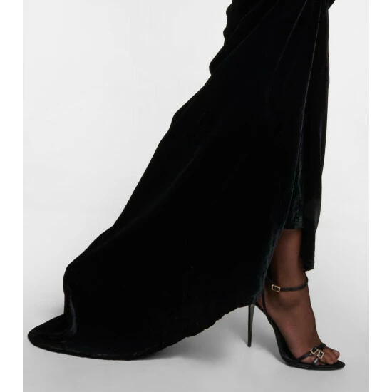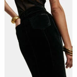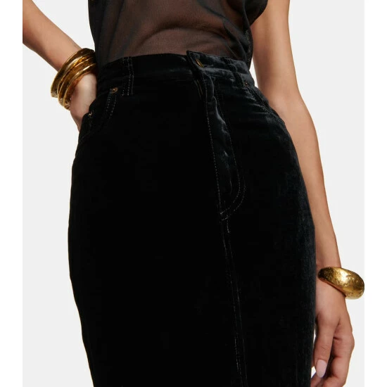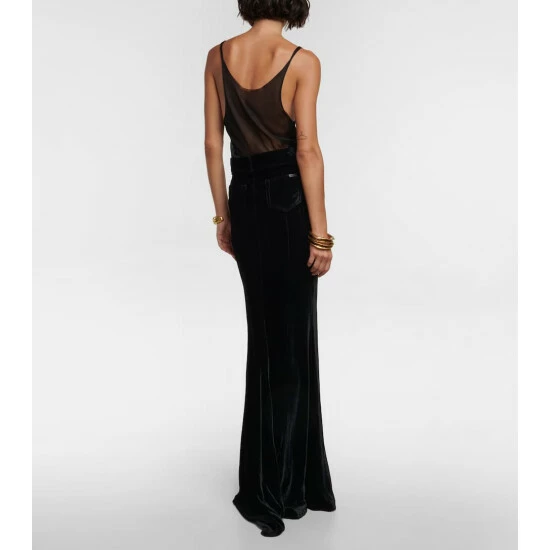 Capture signature house codes in this high-rise maxi skirt from Saint Laurent. It features multiple pockets and a zip front closure, made from plush velvet to a slightly flared silhouette with a dipped hem.