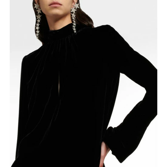 This subtle yet glamorous minidress from Saint Laurent will slot seamlessly into your eveningwear edit. It’s defined by a high neckline with a plunging cutout at the chest, and it’s finished with buttoned cuffs.