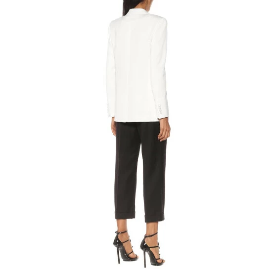 This white wool blazer pays tribute to a piece of fashion history: Yves Saint Laurent’s Le Smoking suit. It’s made in Italy to the house’s precise standards and lined with silk, with shoulder pads maintaining its iconic silhouette. Wear over a diaphanous evening dress for an alluring finish.