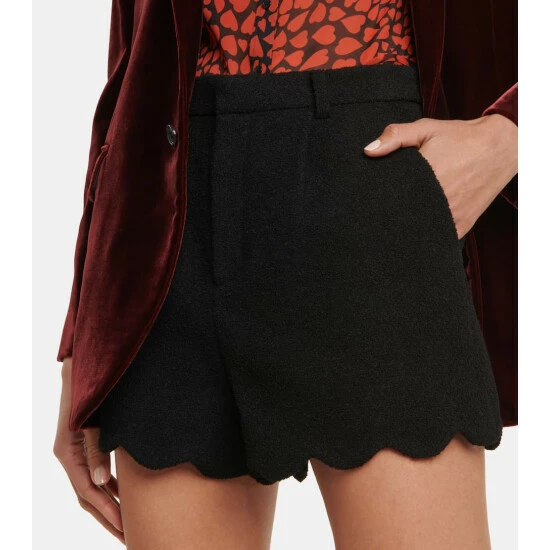 These classic shorts from Saint Laurent are made from wool-blend tweed and front pleats for a tailored look. Designed with scalloped hems, they sit high on the waist.