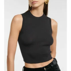 Essential is the definition of this top from Saint Laurent. This sleeveless piece is made from a blend of wool, cashmere, and silk, and is designed to be cropped.