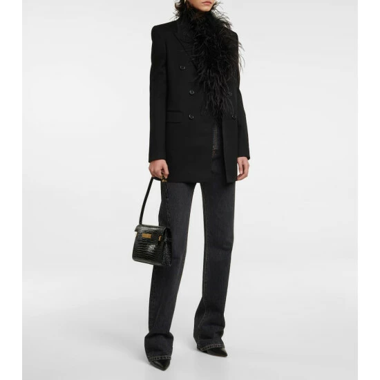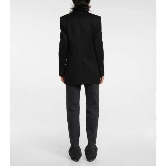 This double-breasted blazer from Saint Laurent proves the empowering qualities of sharp tailoring. Made in Italy from pure wool twill and lined with silk, it has peaked lapels, a welt pocket and two flap pockets.